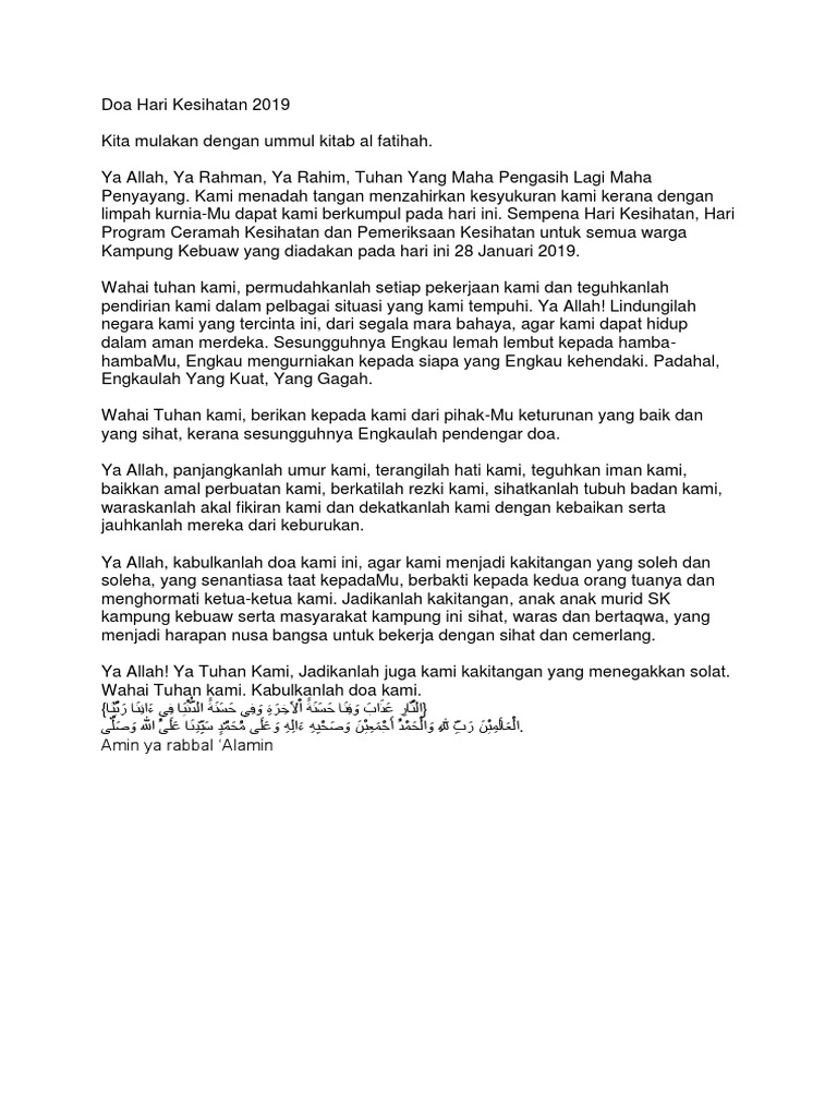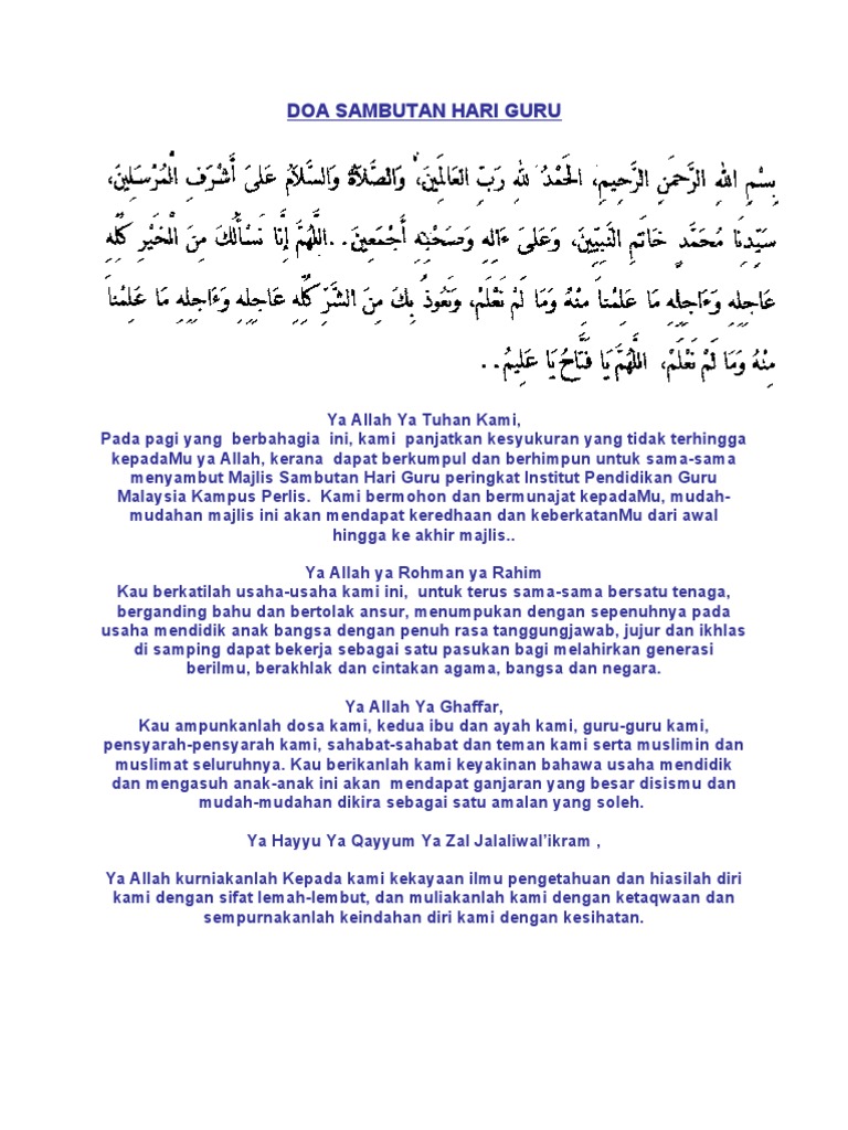 Kurniakanlah kesejahteraan dan kebahagian kepada kami. DOA HARI KESIHATAN SEDUNIA _____. View flipping ebook version of BUKU PROGRAM MAJLIS SAMBUTAN HARI GURU SMK 2BSL published by peb1102smkg on 2021-05-24.