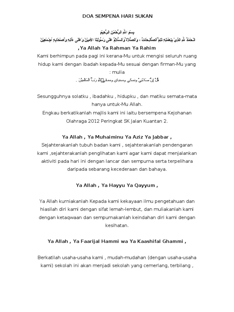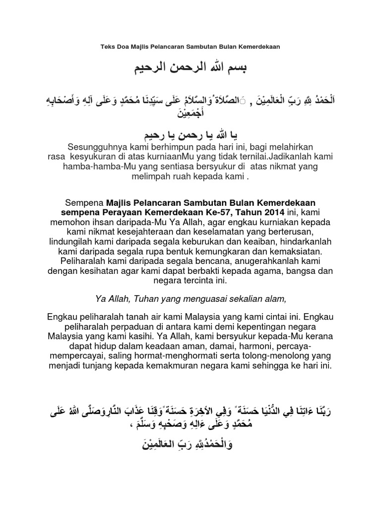 Teks Doa Majlis Pelancaran Sambutan Bulan Kemerdekaan Pdf
